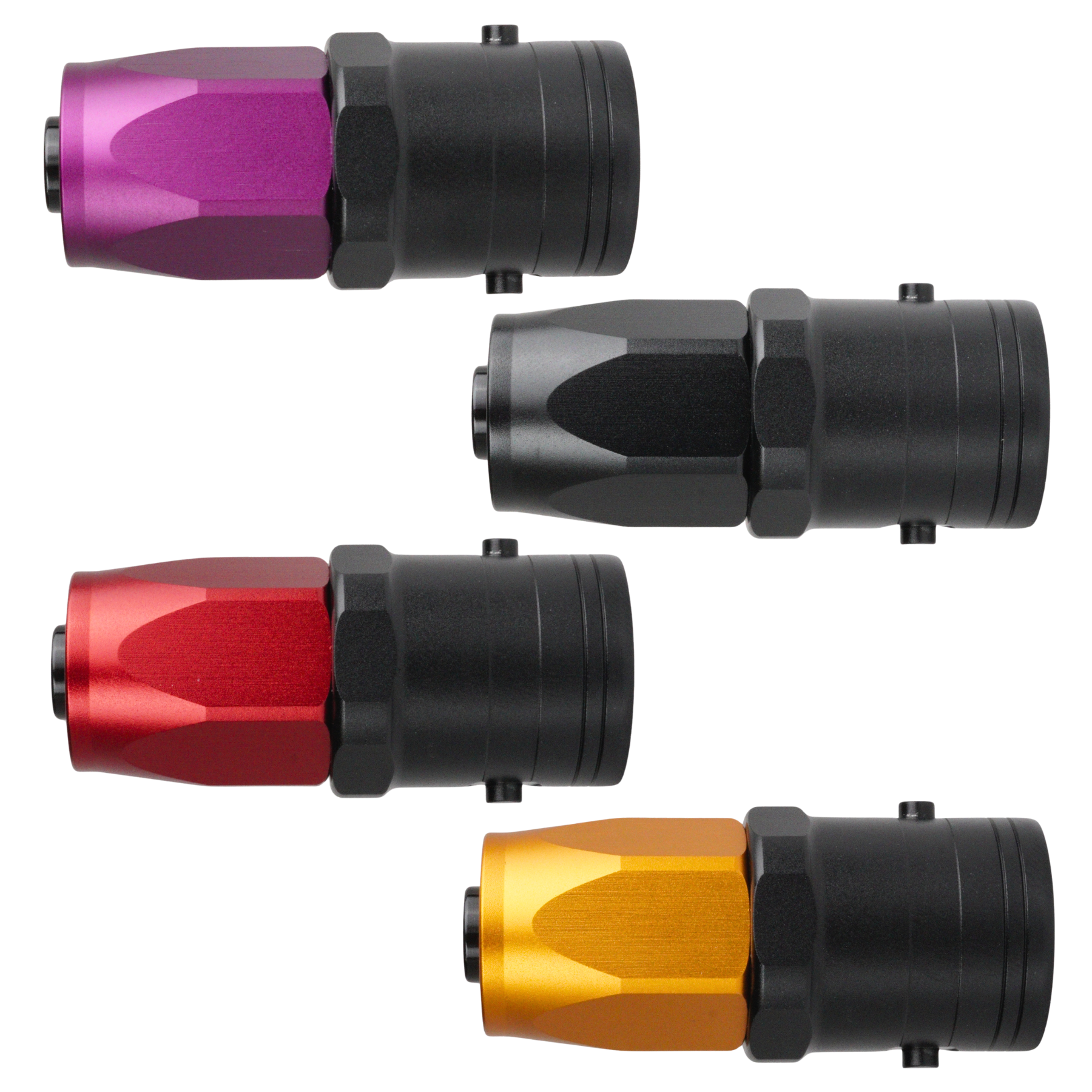 Skruvas i gängade AN- eller JIC-portar och tätar mot plan yta med o-ring, istället för via kona. I den motsatta änden ansluts Quick-Connect slangkoppling.Slangkoppling: