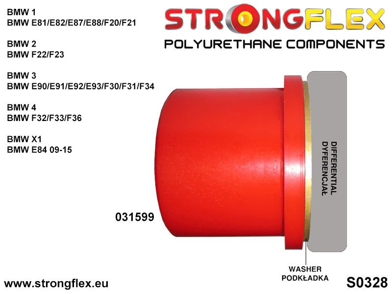 Artikelnummer: 031599B Namn Engelska: Rear diff rear mounting bush Passar följande modeller: BMW 1 BMW E81/E82/E87/E88/F20/F21 BMW 2 BMW F22/F23 BMW 3 BMW E90/E91/E92/E93/F30/F31/F34 BMW 4 BMW F32/F33/F36 BMW X1 BMW E84 09-15 OEM nummer nummer: 33316769376 33176760288 Antal/Prod: 1 Åtgång/Bil: 1 Bildbeskrivningar: D0325S0328 D0358 Hårdhet: 80ShA Material: POLYURETHANE (PUR/PU) Monteringsfett skickas med alla produkter!.