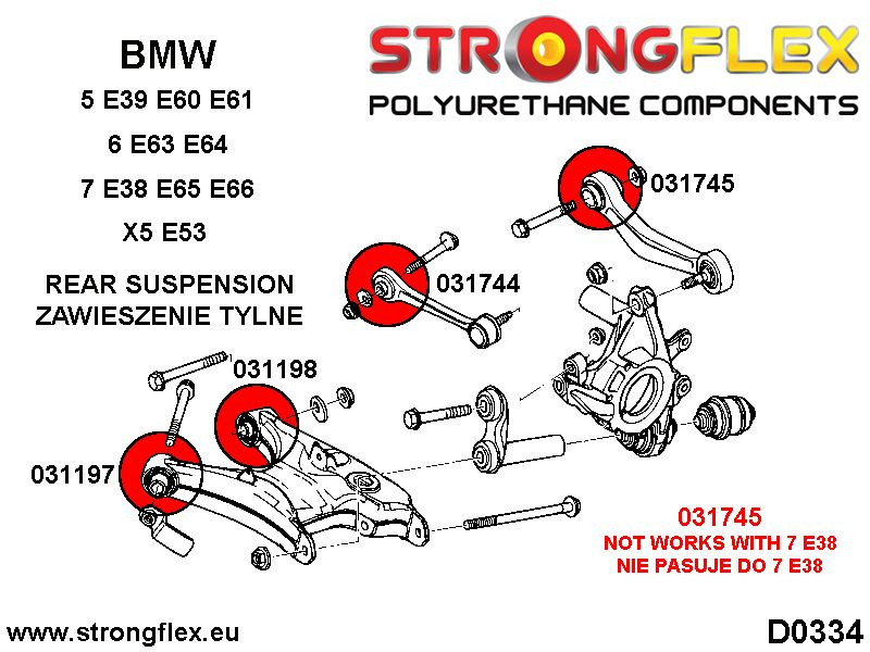 Bush 031938B is only available in hardness 80ShA (red color), hardness 90ShA (yellow) is too hard for model X5 E53.