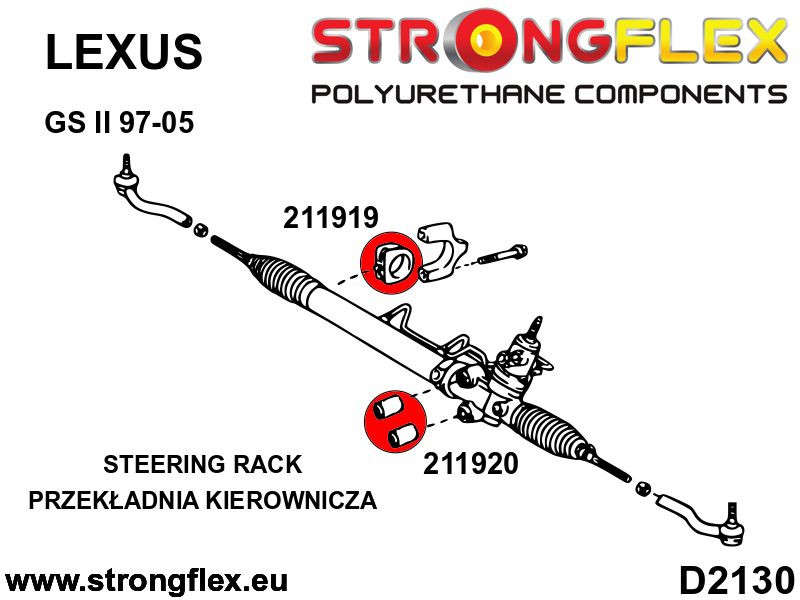Artikelnummer: 211919A Namn Engelska: Steering clamp bush SPORT Passar följande modeller: Lexus GS II 97-05 OEM nummer nummer: 45517-30050 Antal/Prod: 1 Åtgång/Bil: 1 Bildbeskrivningar:D2130 Hårdhet: 90ShA Material: POLYURETHANE (PUR/PU) Monteringsfett skickas med alla produkter!.