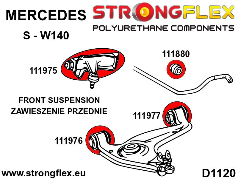 The E-W210 features two front anti roll bar bushes, 111814 or 111880.Hårdhet: 90ShA