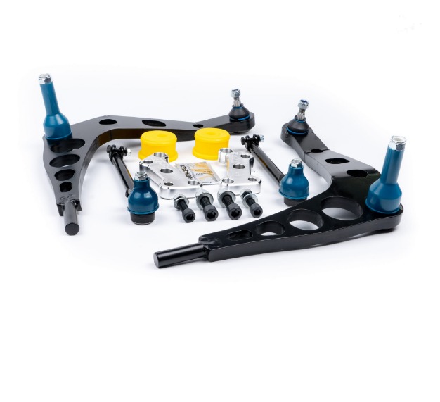 Adapters are milled on CNC machines, which gives a high quality finish and 100% matching of the adapter to the steering knuckle and pin ends. For E36 the adapters are made of the hardest aluminum acc. To Polish standards. The control arm is cut with a laser and has precisely machined holes for pins and stabilizer mounting (we recommend its assembly for better driving of the car in skidding, especially when the suspension is not "concreted").