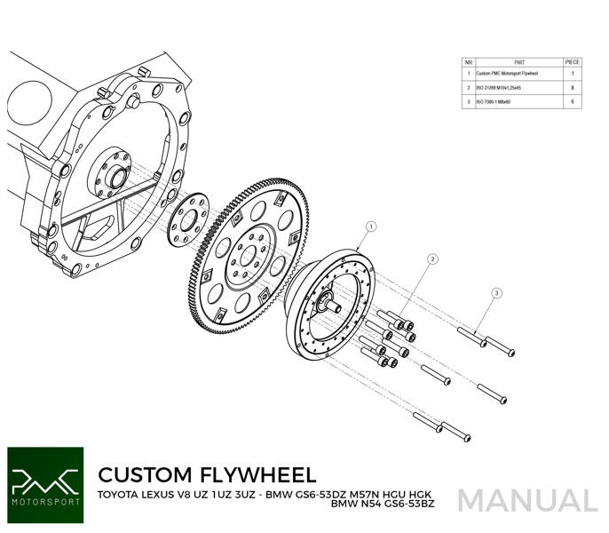 PMC Motorsport RACE STAGE 3 adapter kit Toyota Lexus V8 UZ 1UZ 3UZ - BMW M57N M57N2 GS6-53DZ HGU HGK / BMW N54 GS6-53BZ - 184mm 7.