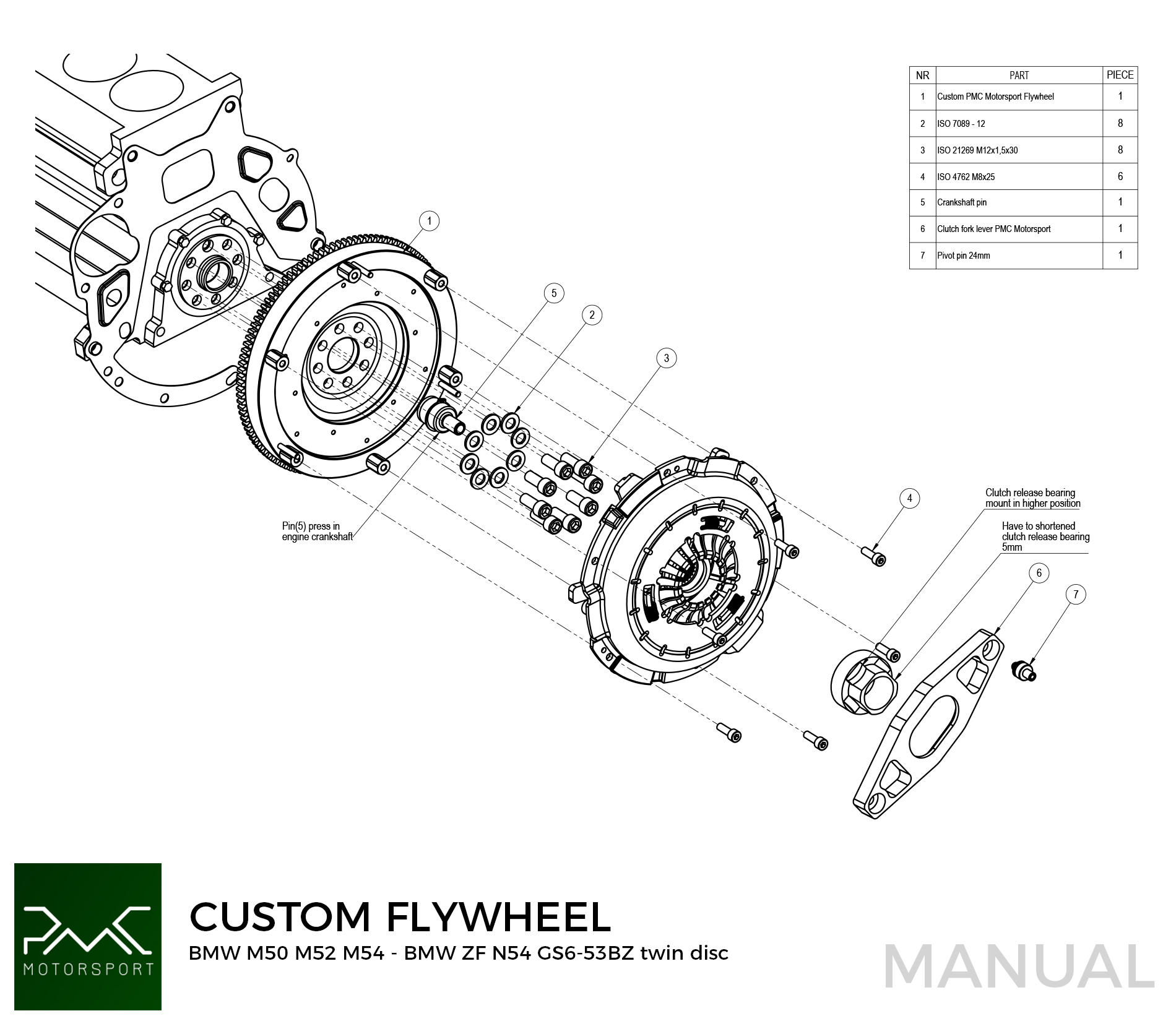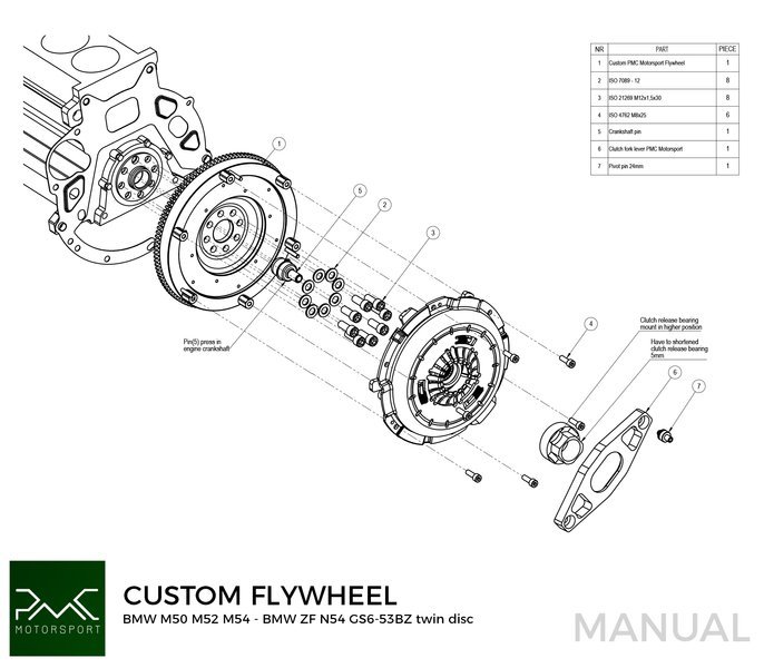 PMC Motorsport STAGE 2 adapter kit BMW M50 S50 M52 S52 M54 S54 - BMW ZF GS6-53BZ N54 335i 135i - 215MM /8.46" + Twin Disc Clutch Kit