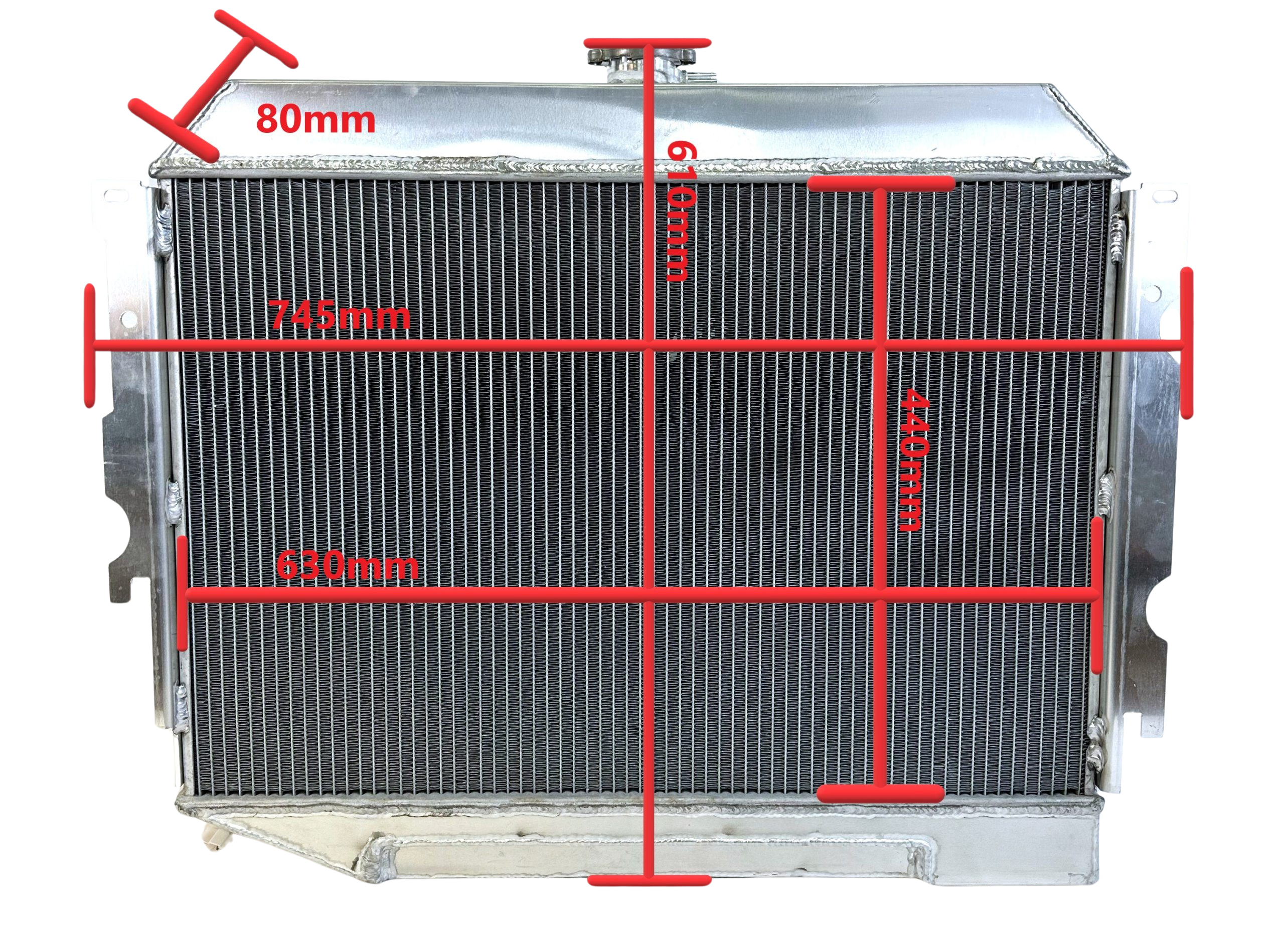 Modellanpassad vattenkylare tillverkad i aluminium och TIG-svetsad och levereras med 2 12″ fläktar. (90W st). Kylrören sitter med ett avstånd på 10mm mellan varandra och har 14-16 flänsar per tum.