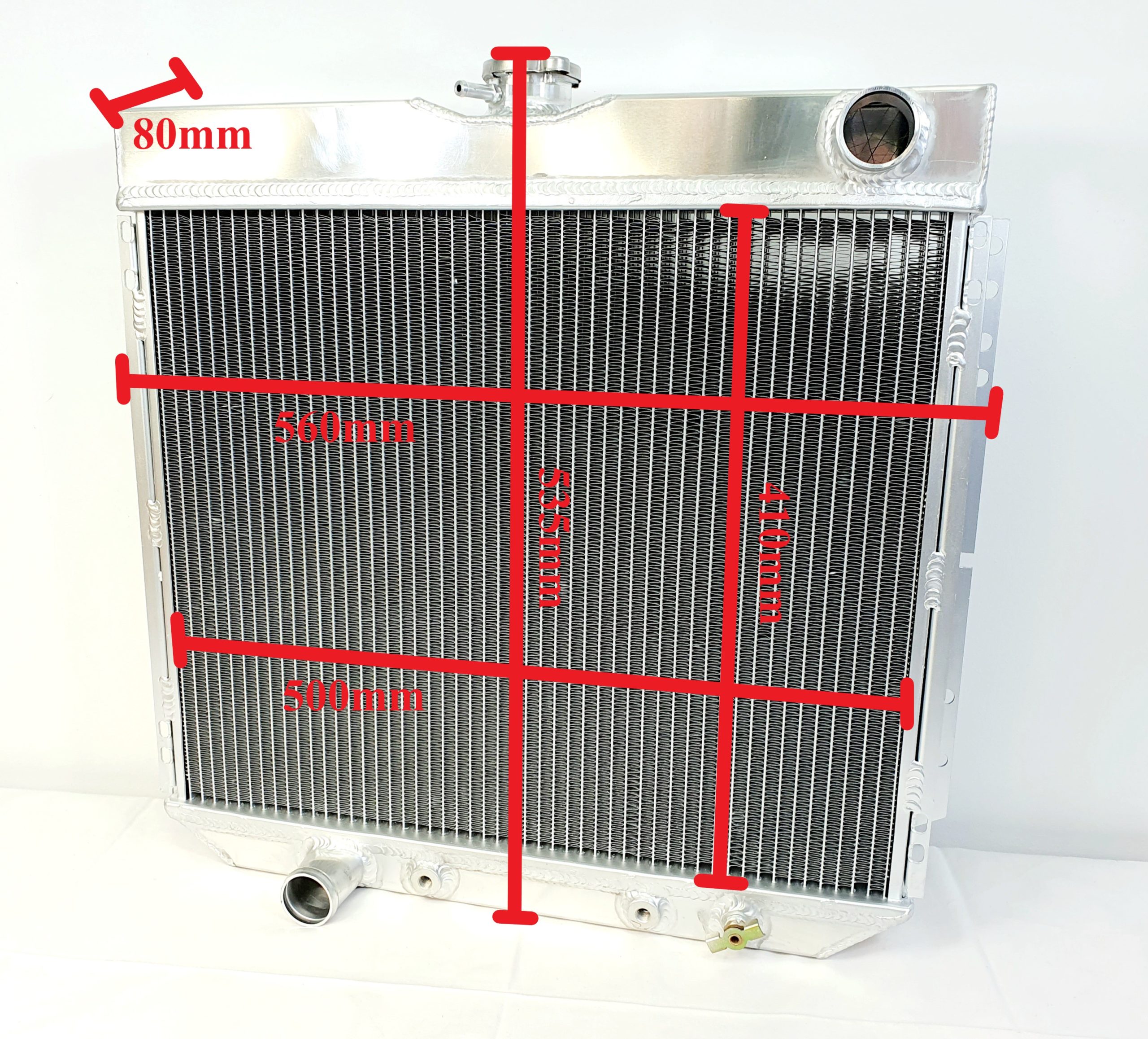 Modellanpassad vattenkylare tillverkad i aluminium och TIG-svetsad. Kylrören sitter med ett avstånd på 10mm och har 14-16 flänsar per tum.