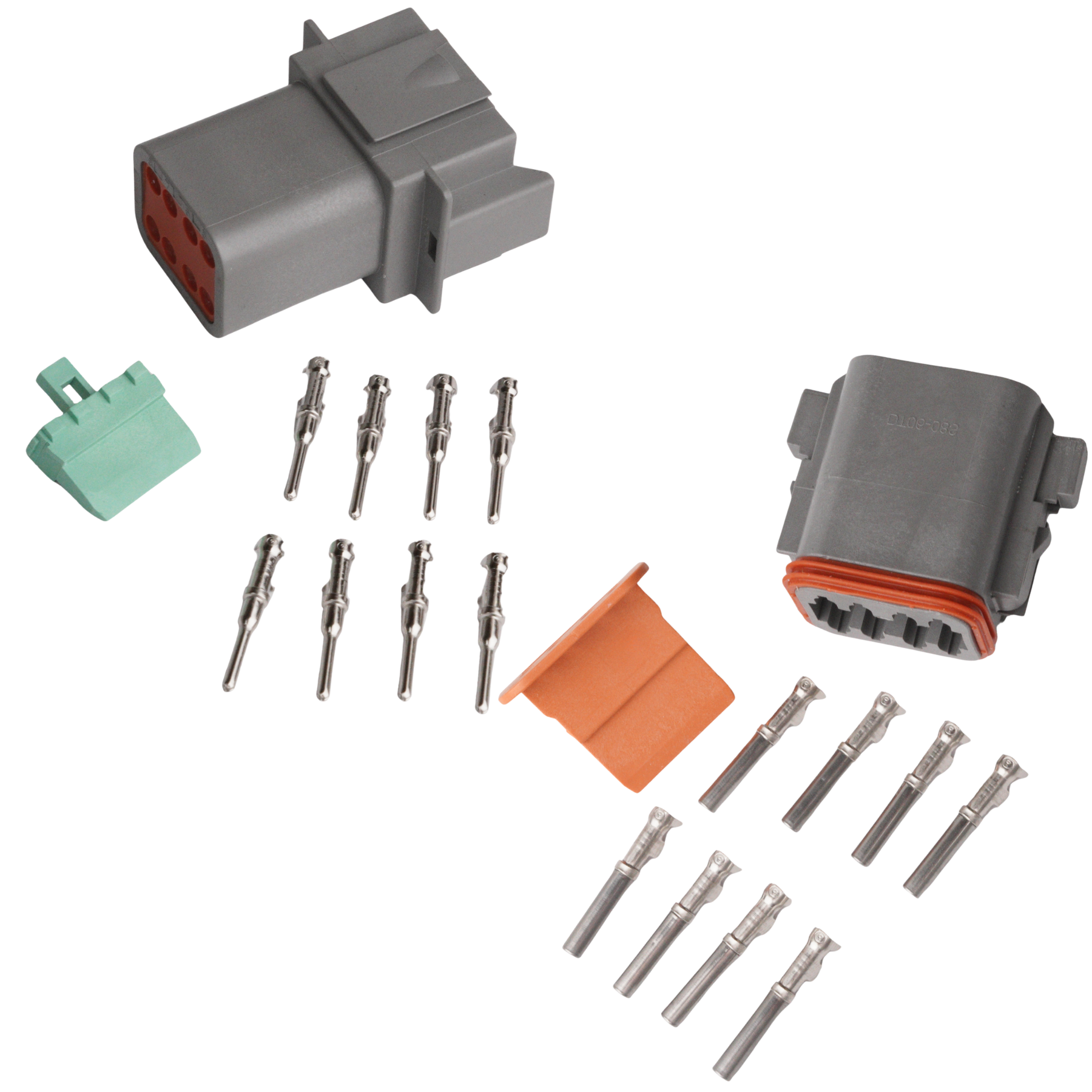 Detta är en 8-polig DT kontakt som används mycket inom motorsport på grund av sin höga kvalité. Kontakterna är tillverkade i Termoplast vilket gör att de klarar från -55°C till +125 °C!