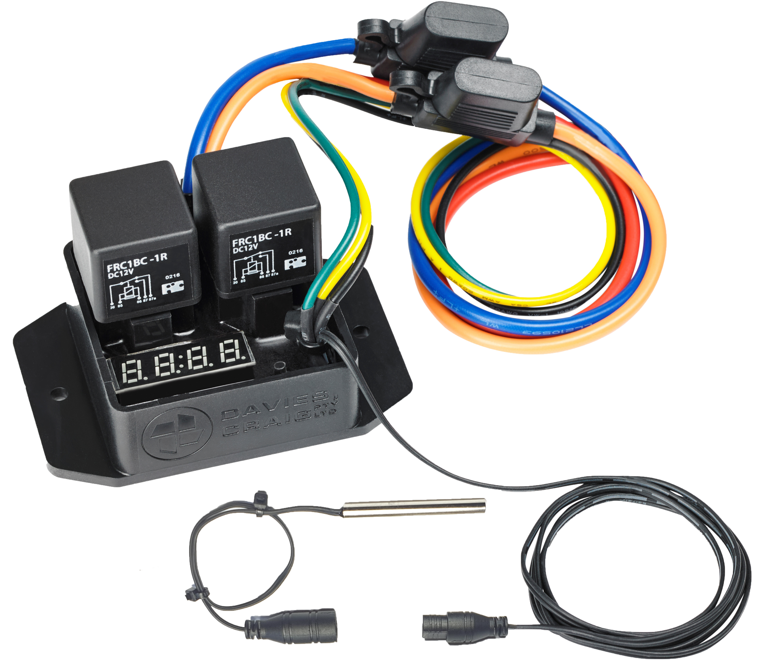 Davies Craig fläktstyrning med reläer som passar till deras egna fläktar, vattenpumpar och även andras fläktar. Passar perfekt till dig som inte programmerat in kylfläktarna i din ECU och vill ha en enkel men effektiv lösning för att styra fläktarna.