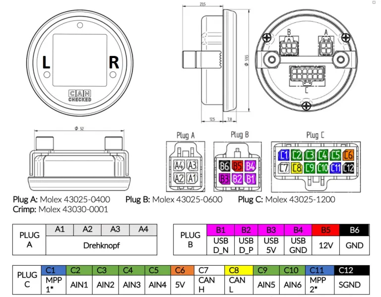 52 mm Can-Bus multidisplay