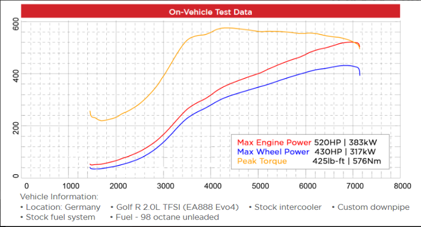 • 550BHP | 410 kW turbokapacitet (resultat på fordon 520BHP | 383kW – med konservativ justering)